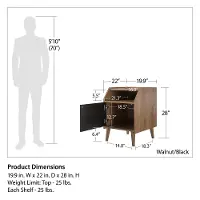 Made from engineered wood laminated with a walnut finish, and black ribbed cabinet door, the Magnolia End Table provides a place for both nostalgia and functionality to resonate. This end Table provides a top surface for a lamp or decor, a lower storage area for remotes and reading materials, and closed storage for everything else to ensure your living room stays clean and tidy. The End Table ships to your door in one flat box and requires assembly upon opening. Two adults are recommended to assemble.