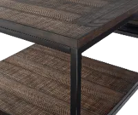 A modern metal base with an unexpected wire-brushed wood-planked surface is the hottest thing going.