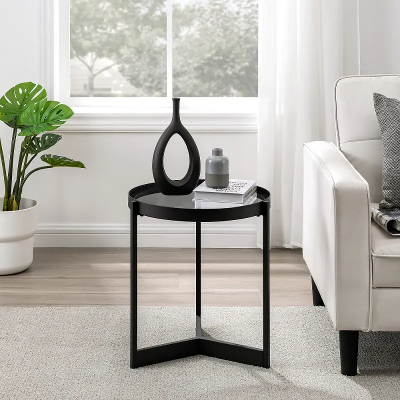 Rhonda Smoked Glass Tray-Top Round Side Table