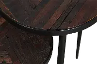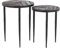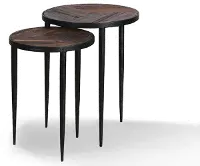 Beautifully crafted from three different natural woods, this set of nesting chairside tables offers a truly unique addition to your living room.