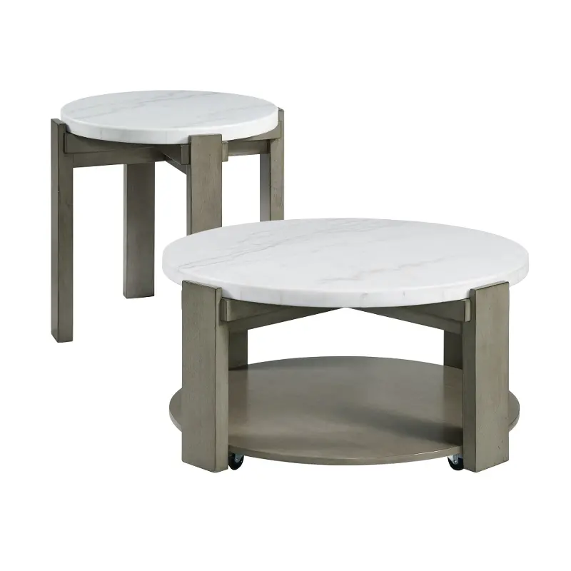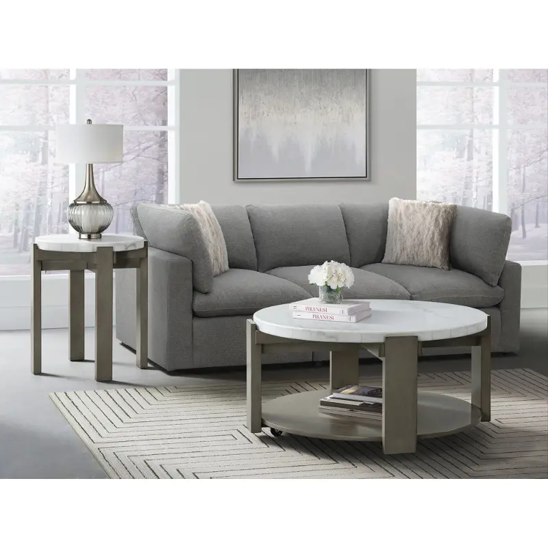The sleek lines of the wooden base are finished in a gray tone, accenting the unique veining in the natural marble tabletop. This strong and sturdy table will be a timeless staple in your home design for years to come! Use this piece on its own or pair it with the other items in our Rosamel collection for a complete living room set.