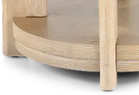 The gently round shape of this end table is enhanced by the natural grain of oak veneers and showcases the quarter-turn pattern in the wood. Perfectly sized to display your favorite items, tuck it next to your couch or chair to complete the look of your living room.