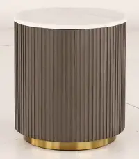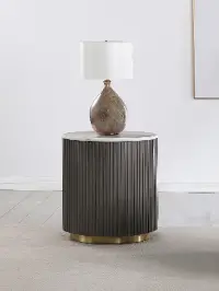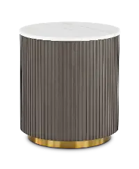 The smooth round shape highlights natural veining on the genuine white marble tabletop and adds a light, clean look to any room. The ribbed design in the table frame is brought out by the rich charcoal finish, creating texture and depth. A brushed gold metal base brings a luxurious touch. Complement this piece with the matching coffee table from the Janson collection, and refresh your living space today!