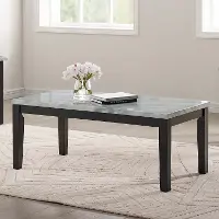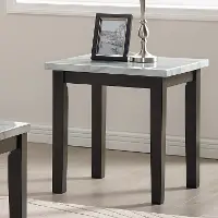 Tasteful and transitional, this three-piece table set is sturdily crafted and features clean silhouettes and dark brown finished legs with white marble-look tops. Its no-nonsense design is perfect for a range of tastes and spaces.