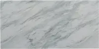 - Marble-look table tops with dark brown finished legs