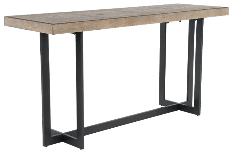 The natural wood grain shows through the warm dune finish, while the sleek black metal adds a little bit of drama! The crisscrossed table base and thick sturdy tabletop make a statement, while also ensuring they will last for many years to come. Placed along the back of your sofa, this piece is perfect for decorating for holidays and featuring precious family photos!