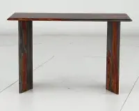 The unique gray and brown finish highlights the angular lines of the table legs, enhancing its modern look and design. A slender yet spacious tabletop is perfect for displaying family photos, a decorative mirror, or your favorite knick-knacks. This eye-catching piece stands strong on its own, or you can add more coordinating pieces from the Bardell collection to complete the whole look.