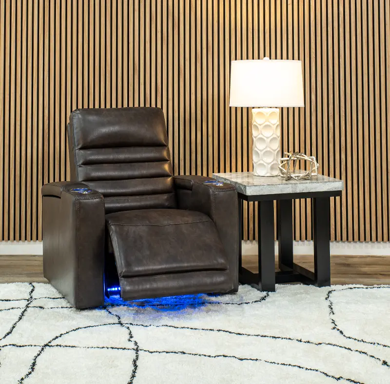 This recliner is packed with features that will make you wonder what you ever did without them. With top-of-the-line power units and the most stable frame construction method, you can prop up your feet with total peace of mind. Find your perfect position to relax during your favorite movie with the power recline and power headrest. The clean lines and professional stitching make this recliner an attractive addition to your theater seating.