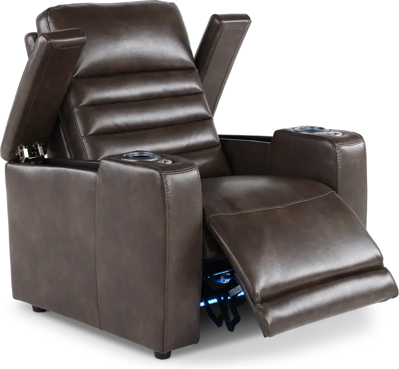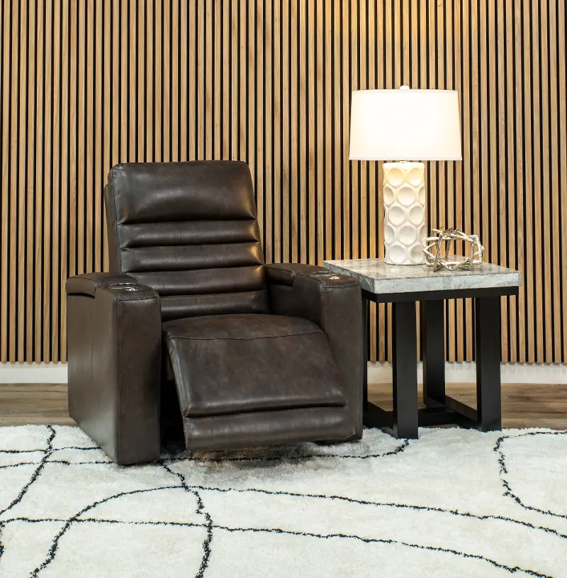 Upgrade your home theater experience with the dark brown power recliner from the Copley collection!