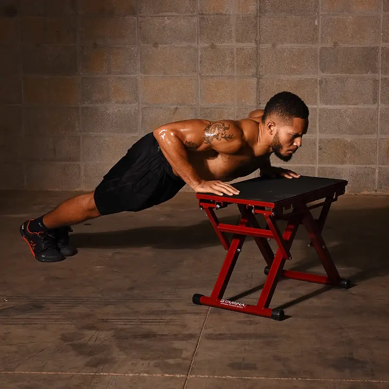 This high-intensity training uses both your upper and lower body to work together to create a powerful movement which builds strength and endurance. The Stamina X Plyo Box adjusts to four different heights allowing you to progressively increase the intensity of your training. This space saving adjustable height plyometric box is perfect for home gyms. Adjustable Height Plyo Box.