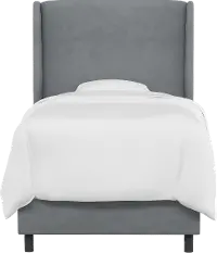 Sloane Velvet Dark Gray Curved Wingback Twin Bed - Skyline Furniture