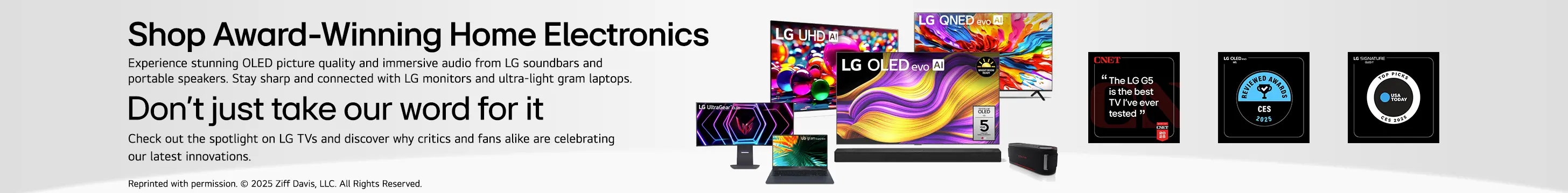 Discover LG's innovative electronics, including award-winning TVs, immersive audio, laptops, and more, for the ultimate in entertainment.