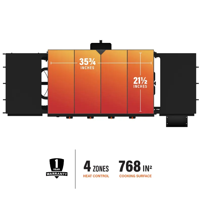 - Four independently controlled heat zones: Cook your main and side dishes simultaneously at different temperatures.