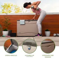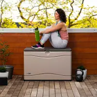 Lifetime’s Deck Boxes are the perfect way to expand your storage and get better access to items you use regularly around your yard. Whether you have gardening tools, lawn equipment, yard games, or even outdoor seat cushions, the Deck Box makes them easy to store and find when needed. It is durable, UV-protected, and weather resistant to ensure your belongings have years of protection. The lid is lockable (lock not included) to provide even greater security and has a controlled spring-hinge for easy opening and closing. It has molded side handles for easy transport making it easy to move around your yard or patio and it is even sturdy enough to be used as a bench. The Lifetime Deck Box blends durability, convenience and style to create a versatile storage solution.