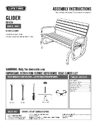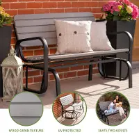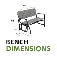 The Lifetime Glider Bench can turn any area around your home into a tranquil setting to unwind with your family and friends. The Glider Bench is contoured for comfort while providing a quiet and gentle glide. The bench is designed to comfortably seats 2 people. The contemporary steel frame is stylish, sturdy and powder-coated for durability and outdoor use. The stylish wood-grain texture gives the bench a natural look and feel. UV-protection and weather-resistance allow the Glider Bench to withstand the elements without fading, cracking, chipping, or peeling. The stain-resistant surface makes it easy to clean and minimizes the upkeep. The protective foot caps prevent floor damage and protect the bench. Whether you are enjoying an afternoon with your family or have friends over for an evening of stories, the Lifetime Glider Bench provides a comfortable space for everyone.