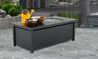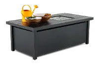 This gas firepit features an easy-on switch and hidden tank storage so you can stay organized and safe while using your firepit. The glass firepit beads will also add contemporary style to your patio furniture. Keep drinks, smores ingredients, and more on the spacious tabletop. Enjoy your summer to the fullest with this large firepit from our Sunset collection!