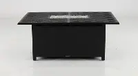 This table has it all, and more, to keep your guests entertained and comfortable. The unique black tabletop has a showstopping design contrasting the clear glass firepit center. The 60,000 BTU's are more than enough to keep everyone warm so you can use this table to it's fullest potential all year long. Pair this table with the patio chairs from our Palazzo collection for a complete home patio design!