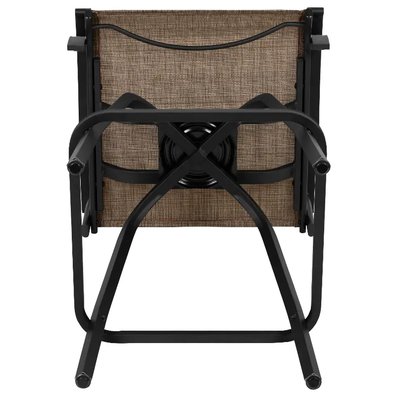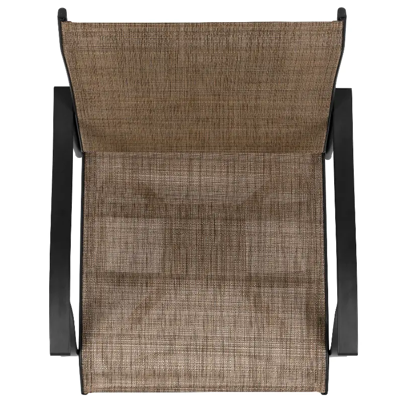 - Extra wide back covered in ventilated textilene sling fabric allowing air to pass
