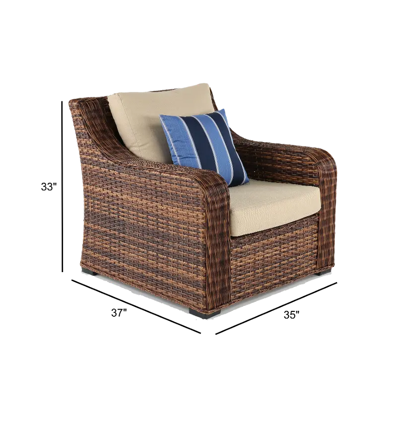With a durable construction on the wicker frames and weather-resistant cushions, you can know that you are investing in a patio chair that will last. The included toss pillow gives you extra comfort wherever and whenever you want it. Add some extra seating to your patio area today!
