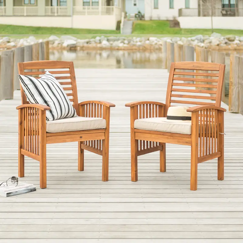 Acacia Wood Outdoor Patio Chairs with Cushions, Set of 2