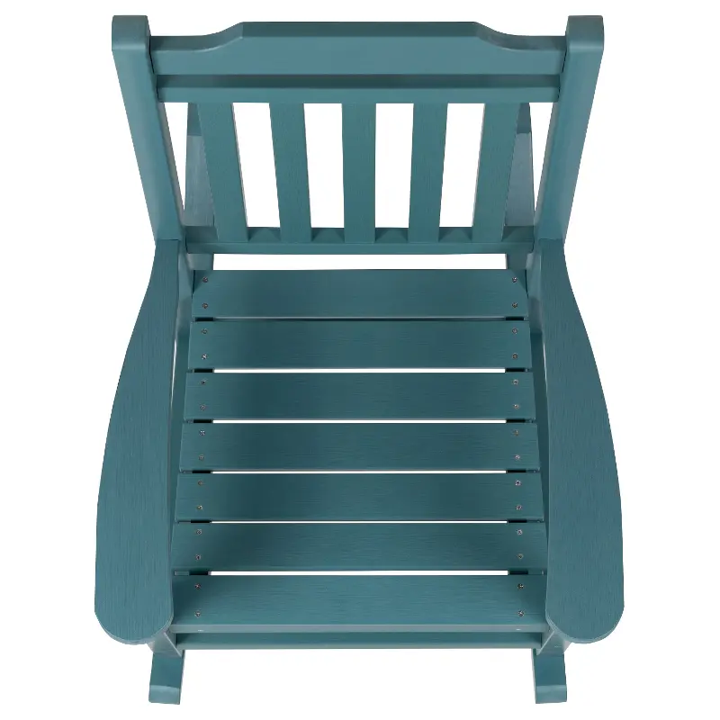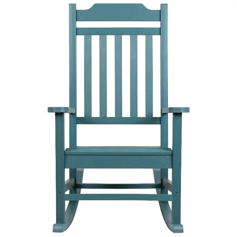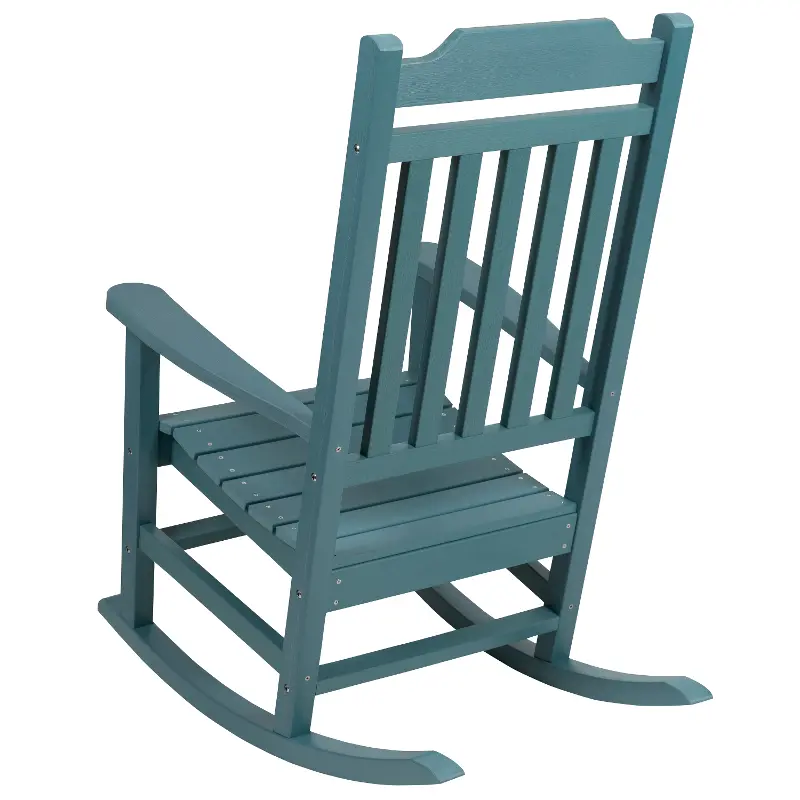 This indoor/outdoor rocking chair is made of long-lasting durable polystyrene so there is no warping, rotting or chipping and no back breaking sanding and staining necessary to keep this chair looking great. Mortis and tenon construction with metal screw reinforcements will hold up to 225 pounds weight capacity and ensure you have a comfortable, worry free seating experience.