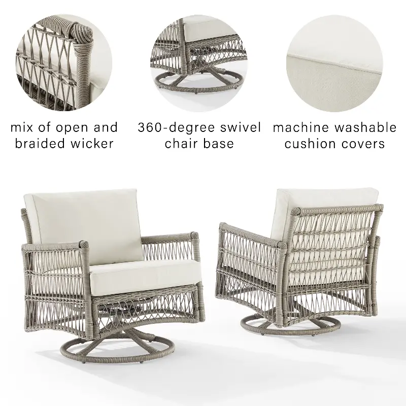 Create the look of an island retreat with the Thatcher 2pc Swivel Rocker Chair Set.