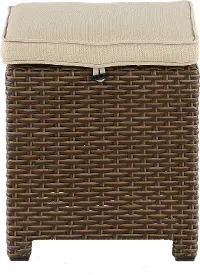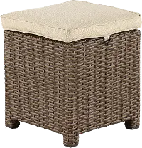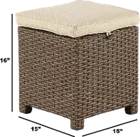 This beautiful wicker and linen patio ottoman is just right to add more comfort and style to your backyard!