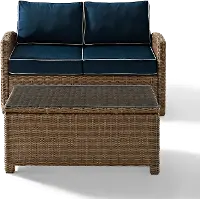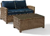 Bradenton Navy and Wicker 2 pc Loveseat and Table Set