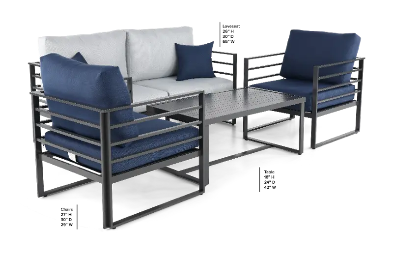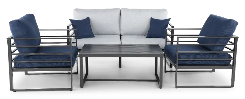 Holt Gray and Blue 4 Piece Patio Set