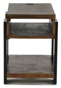 The unique linear design complements the crisp, clean clay and black finish of the wood. This table also features two USB ports on the open shelf to keep your electronics charged and neatly tucked inside. Put your favorite books or decor items on the open lower shelf for even more storage! Pair this with the other items in our Winter Park collection for a complete look!