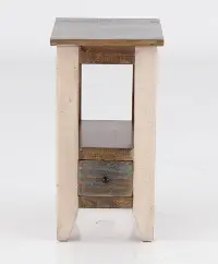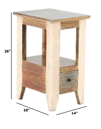 With a drawer for storage and two shelves, you have just what you need to store your living room essentials. The type of joinery used in the construction of this piece has been used for years in quality furniture making which ensures stability and durability on every piece. The finish includes an eight-step hand rubbed lacquer finish with multi-toned colors to resemble recovered wood. Add the matching coffee table, sofa table, and end table for a complete room makeover!