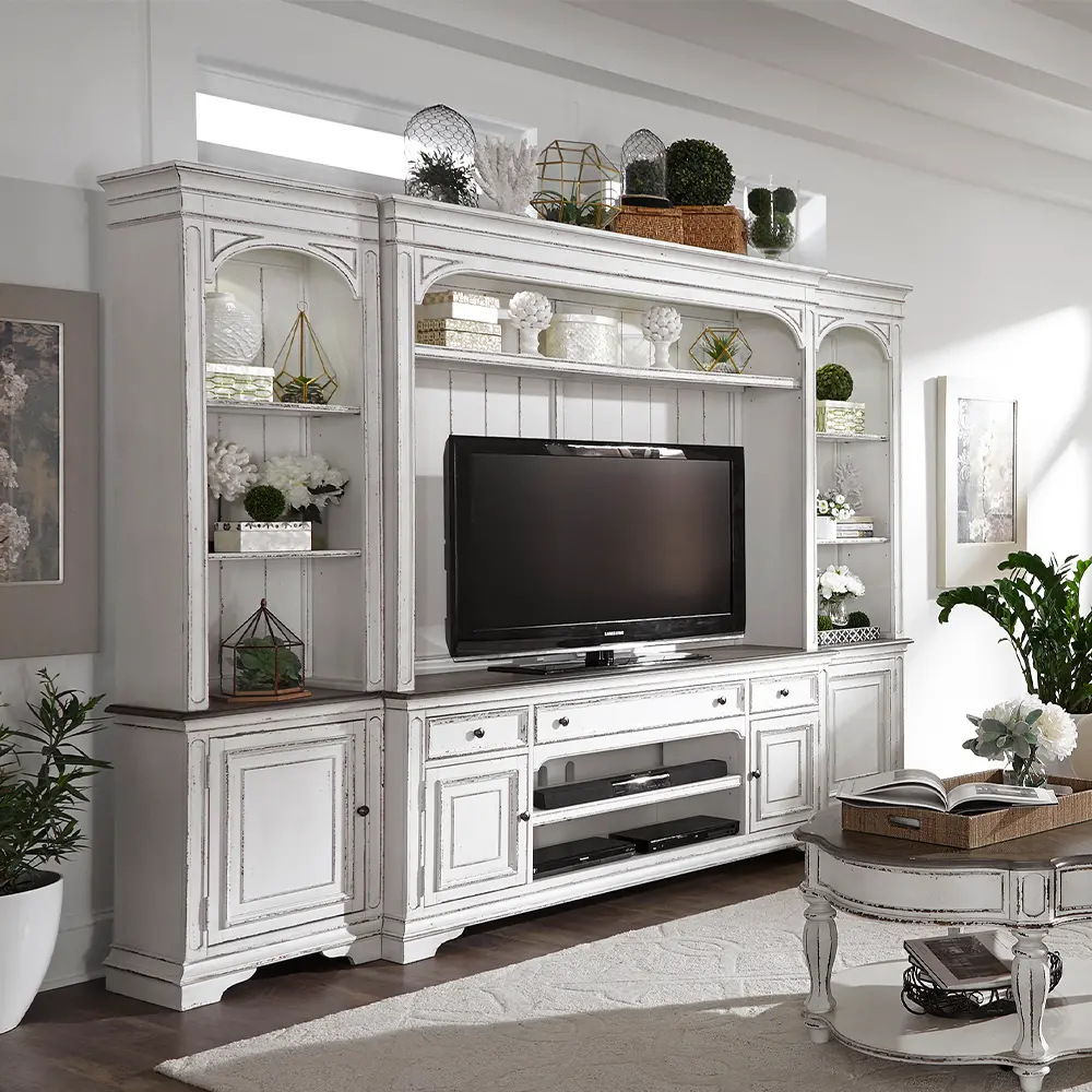 This antique white collection blends European elegance with country chic. Offering ample storage and timeless silhouettes, it's perfect for any space.